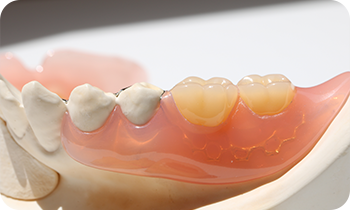 床部分を金属で作る入れ歯です。コバルトクロムは耐久性と安定性に優れ、チタンは軽くて金属アレルギーのリスクが低いのが特徴です。薄く作れるため装着時の違和感が少なく、熱の伝わりも良く食事をおいしく楽しめます。