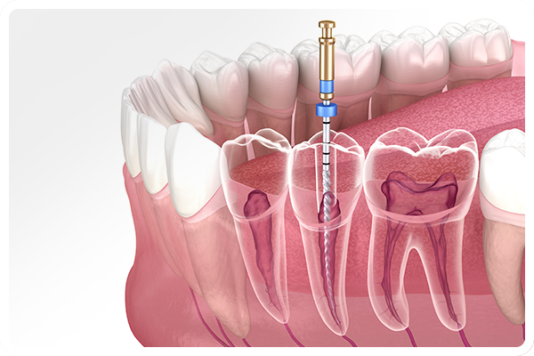 しなやかで折れにくいニッケルチタン製の器具を使うことで、複雑な根の形にも対応し、効率的かつ安全に感染部位を除去できます。