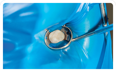 治療部位に唾液が入らないよう、専用のシートで隔離。細菌の混入を防ぎ、清潔な環境で精密な治療を行うために欠かせません。